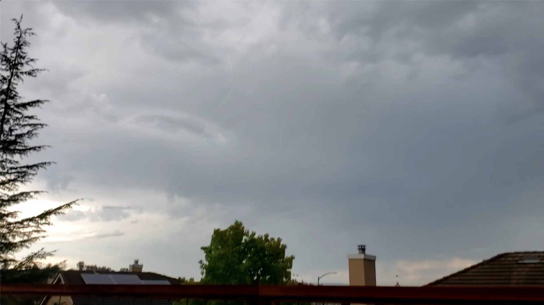 After having coffee and toast the rumbling started up again. No, not from my full tummy. Thought this time I’d see if I could catch some strikes on my phone’s camera, so, headed out to the backyard to make some short videos.